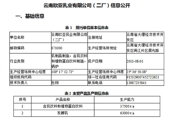 云南歐亞乳業有限公司子公司牧場環保信息公示